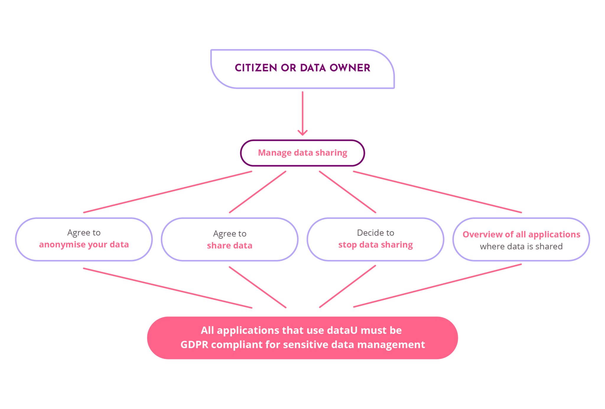 In the dataU ecosystem, these individuals are known as data subjects and are the legal owners of their personal data. dataU’s role is to empower them to make informed decisions about what data they’d like to share, as well as provide them with an easy-to-access overview of all the apps that currently have access to their data, to minimise any risks of unauthorised companies still receiving personal information long after the users have stopped interacting with their service.
